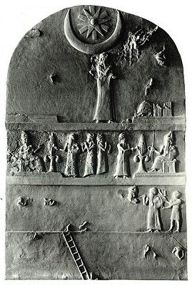 Ur-Nammu stele with crescent moon and star at the top.